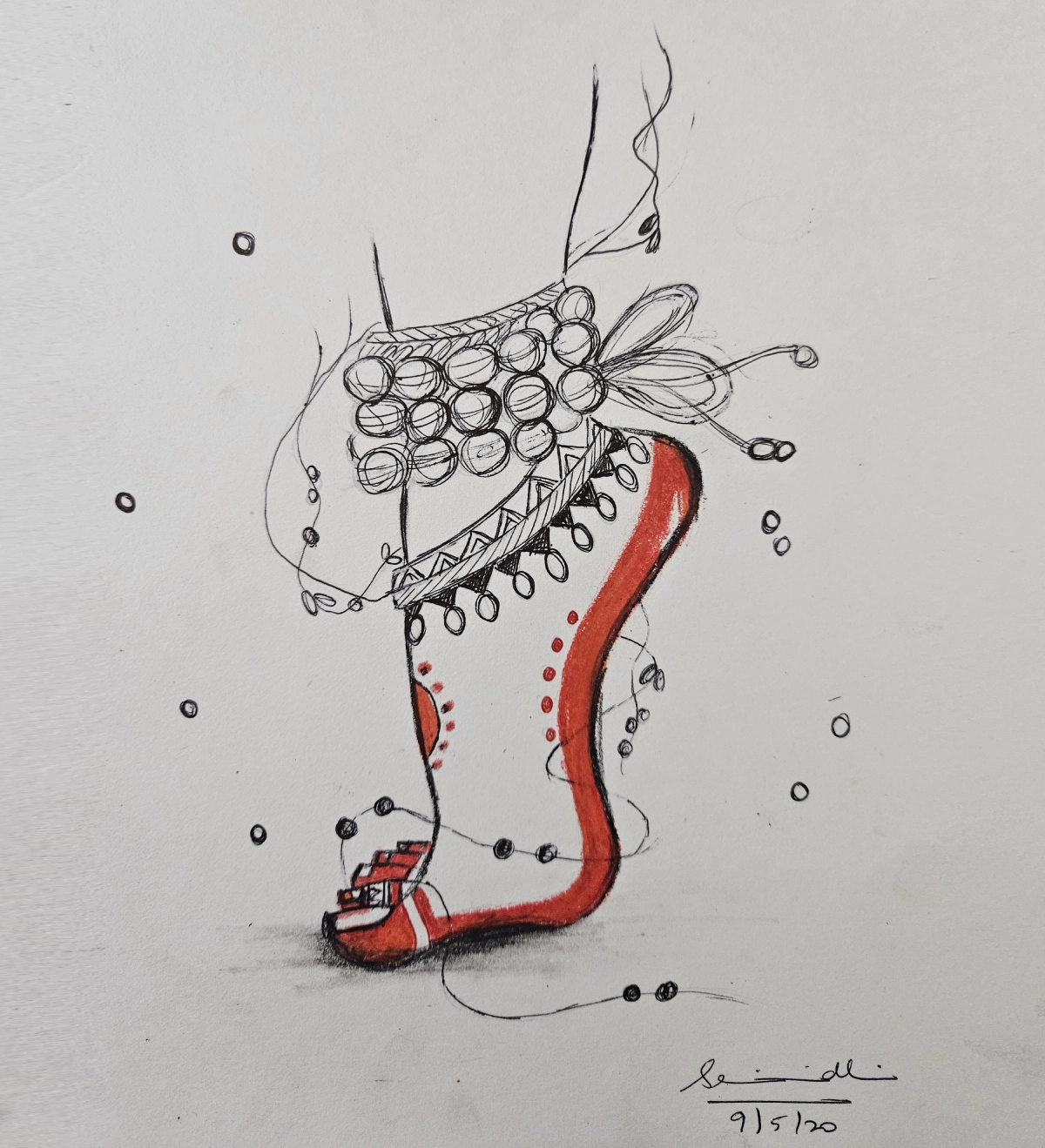 The red highlights add a touch of energy and passion, making the artwork feel more lively. The flowing lines and tiny details of the ornaments represent the beats of the dance, bringing the piece to life. The date in the corner marks when I created it, making it a special moment frozen on paper.
