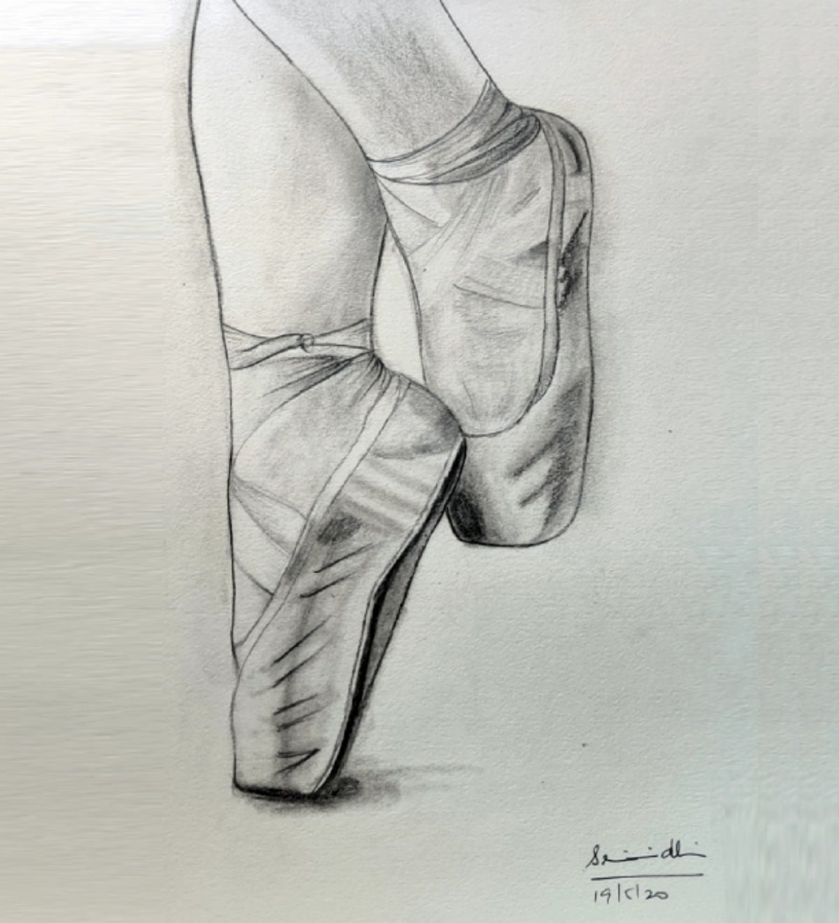 The worn-out shoes tell a story of practice, pain, and passion. Ballet looks graceful, but it takes a lot of effort and strength. This drawing captures that moment of elegance while reminding us of the struggle behind it. The artist might be trying to show the balance between beauty and hard work in the world of dance.